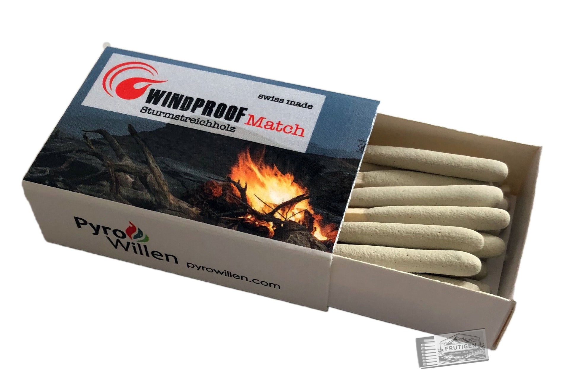 Sturmstreichhölzer 43mm ca. 25 Stk. abgefüllt in Schiebeschachtel PyroWillen oder Klarsichtdose. Die Zündung erfolgt über eine Reibfläche.